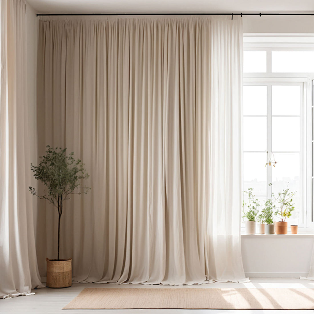 Curtainu Custom Linen Full Blackout Curtains Natural Breeze