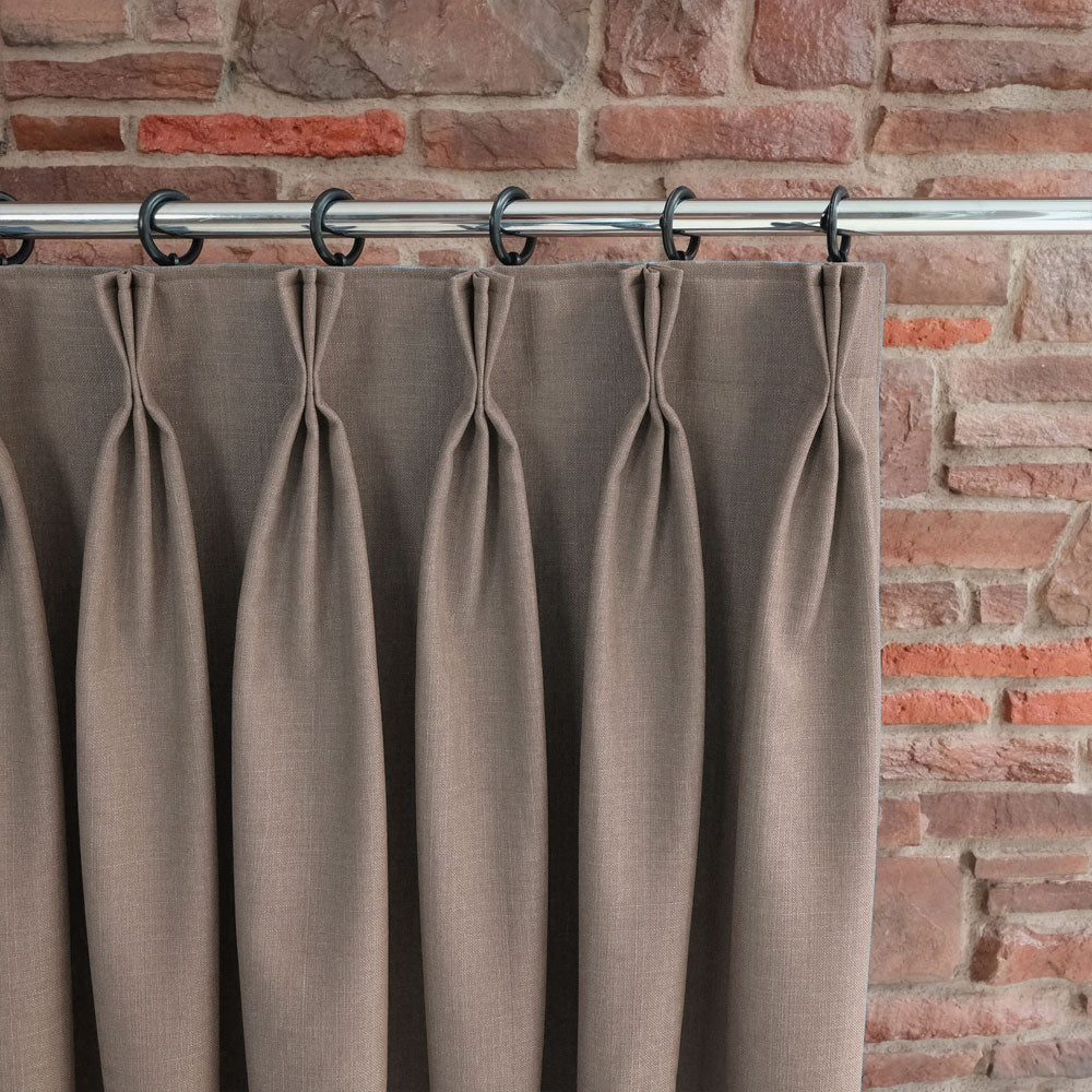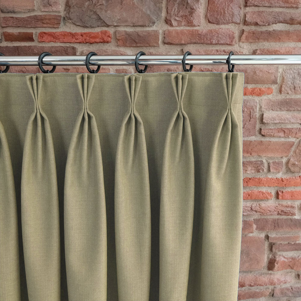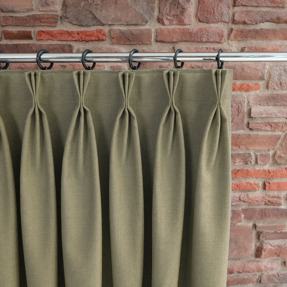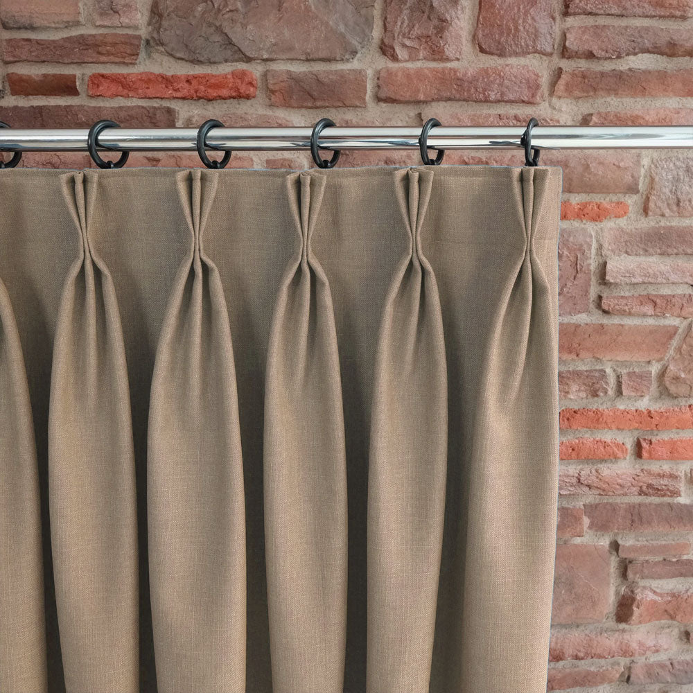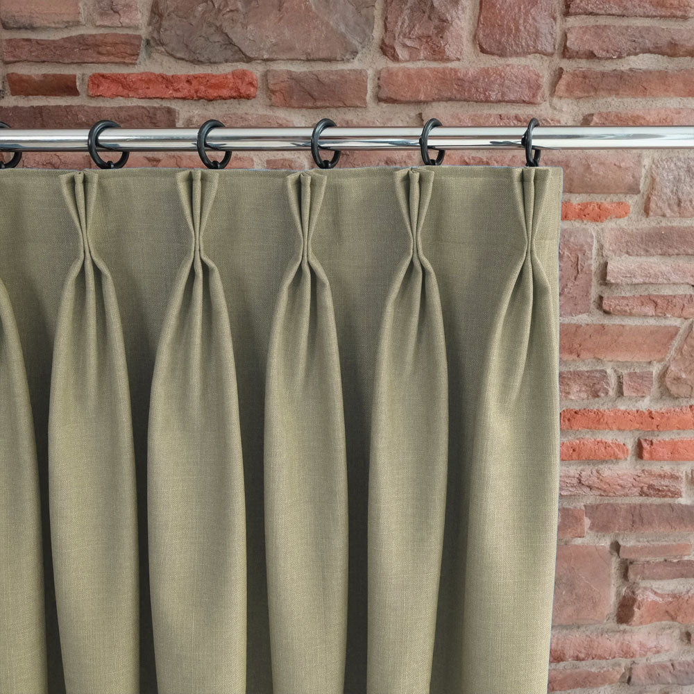 Custom-made triplet pleated blackout linen curtains can be tailored to fit your windows perfectly.