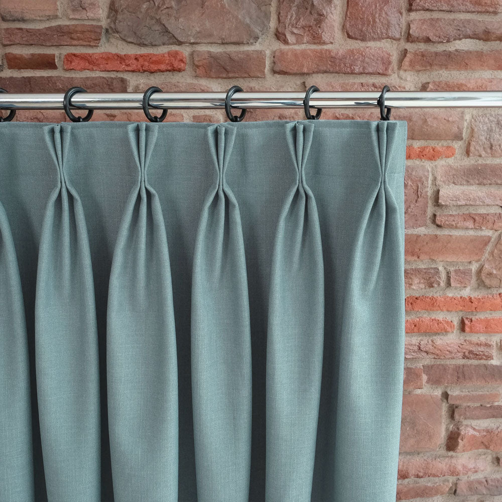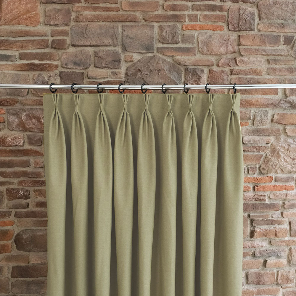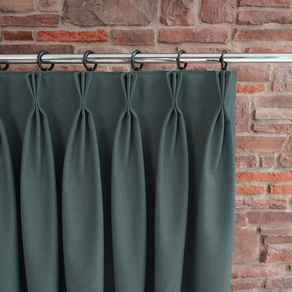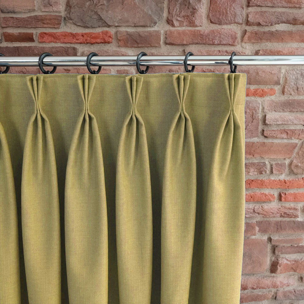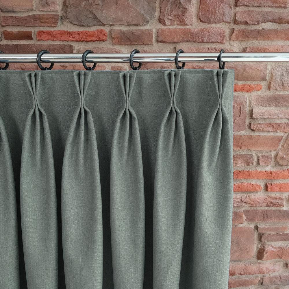 Custom-made triplet pleated blackout linen curtains can be tailored to fit your windows perfectly.