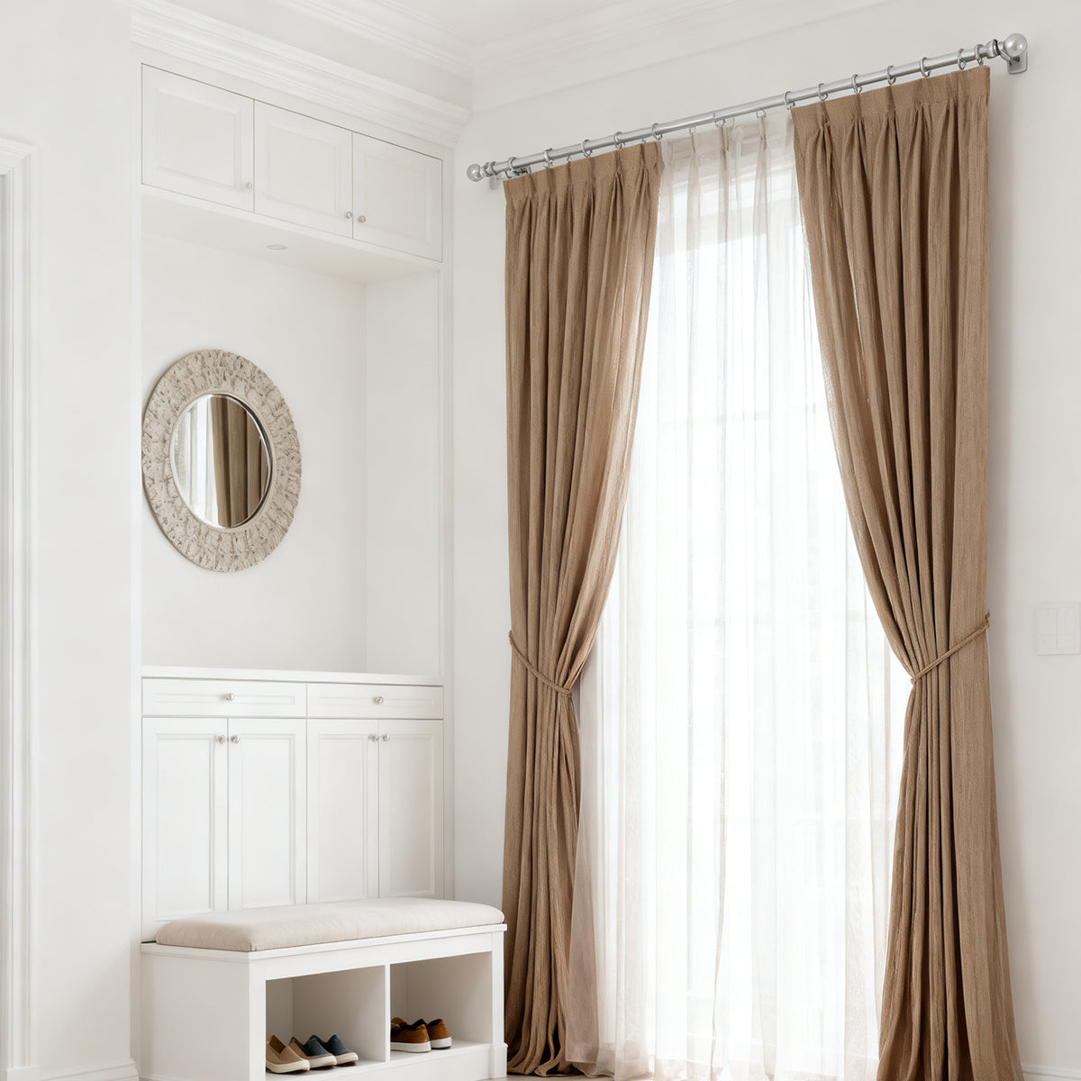 Linen curtains offer a beautiful organic texture, giving your windows a relaxed yet elegant feel. The natural wrinkles and slubs are part of its charm, adding depth to neutral tones like beige, sage, or stone gray.