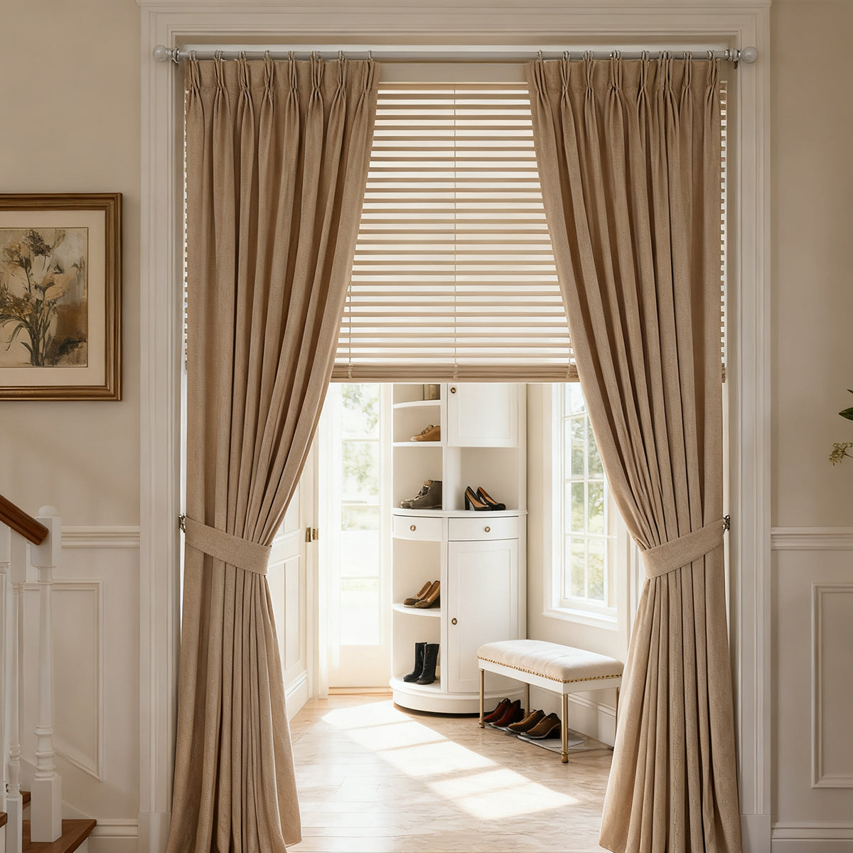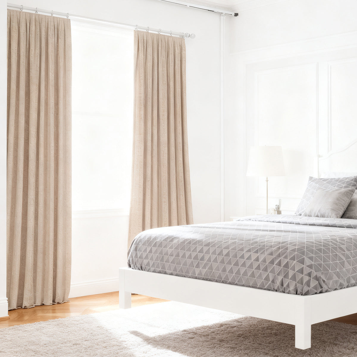 Custom-made triplet pleated blackout linen curtains can be tailored to fit your windows perfectly.