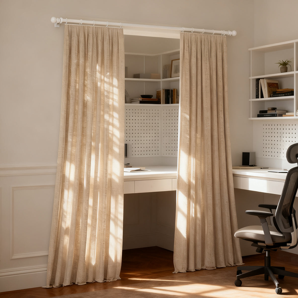 Linen's breathable nature prevents overheating while maintaining a chic look. - Linen curtains for study or home office