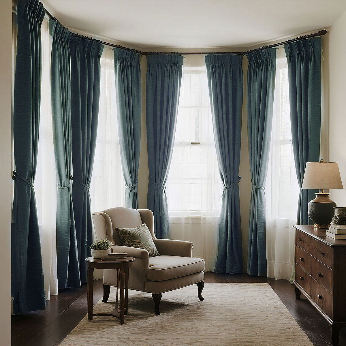 Custom-made triplet pleated blackout linen curtains can be tailored to fit your windows perfectly.