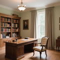 Maintain a professional aesthetic while regulating natural light intake with white linen curtains.
