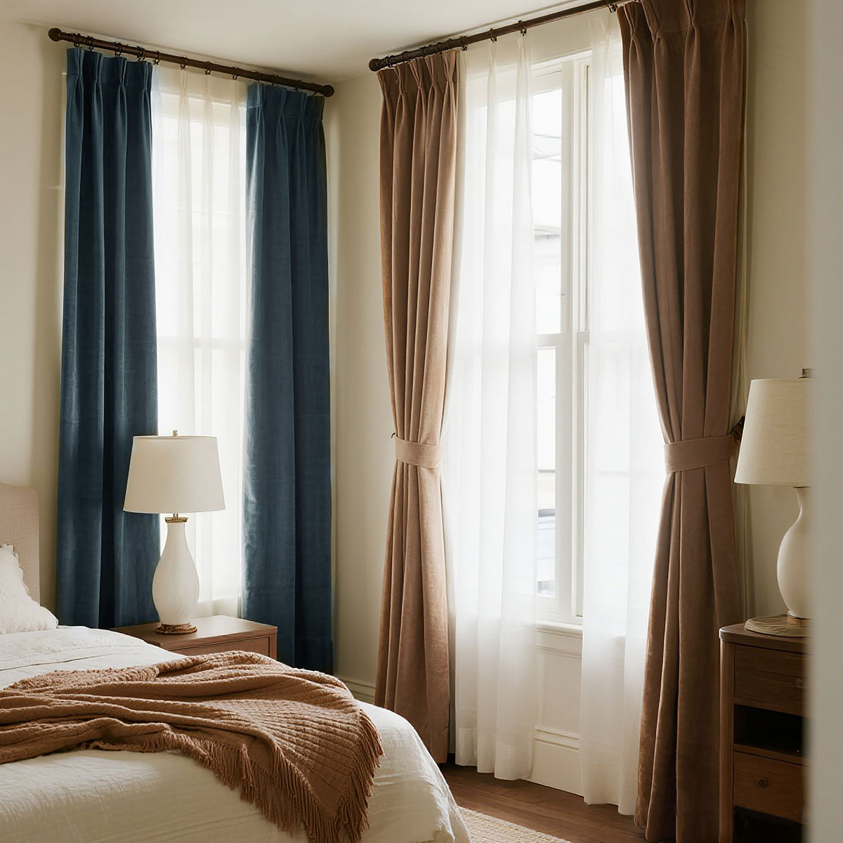 Linen curtains offer a beautiful organic texture, giving your windows a relaxed yet elegant feel. The natural wrinkles and slubs are part of its charm, adding depth to neutral tones like beige, sage, or stone gray.